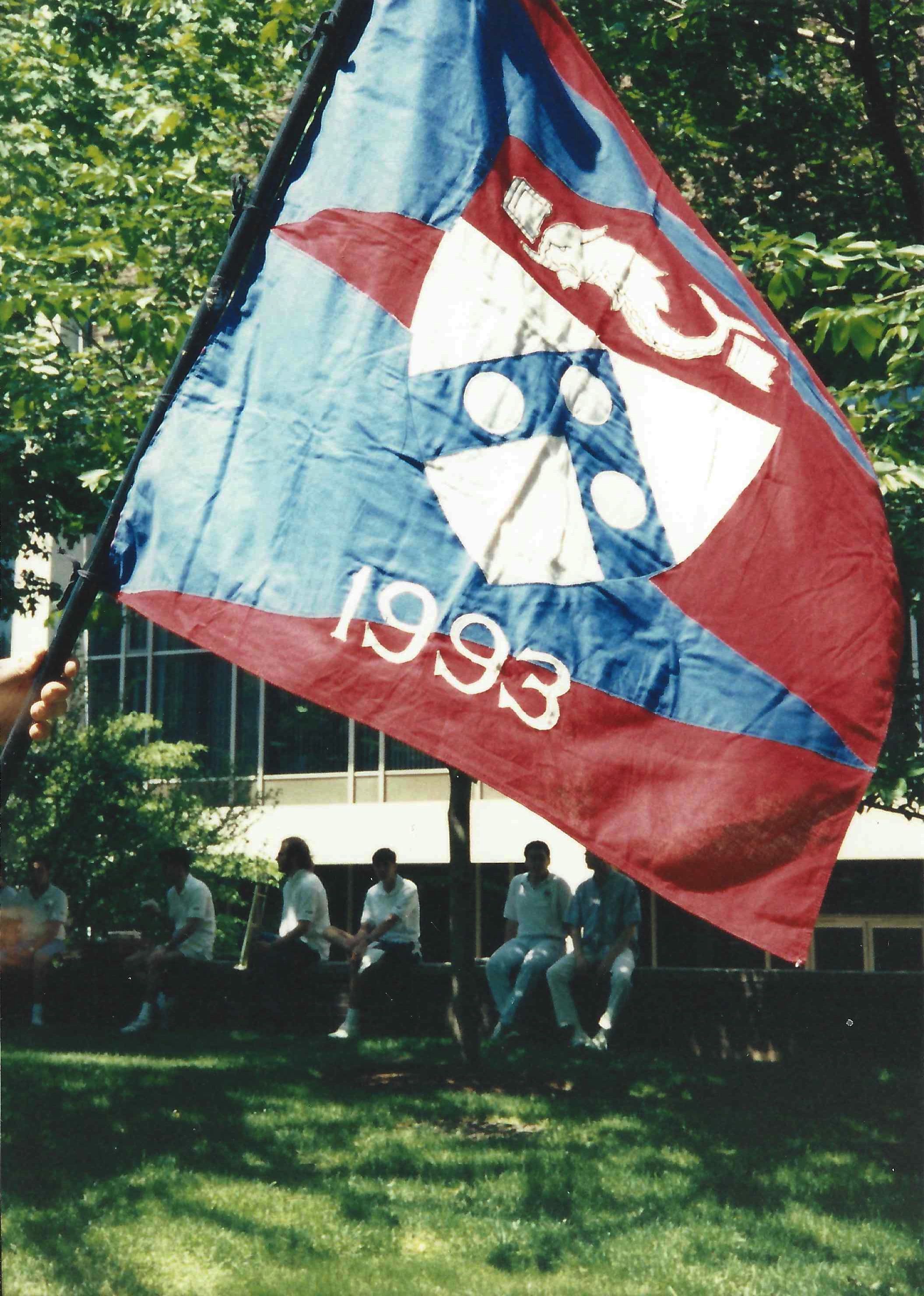 Penn 1993 class flag on Alumni Day at Penn, May 15, 1993. Photo by Kiera Reilly, C’93