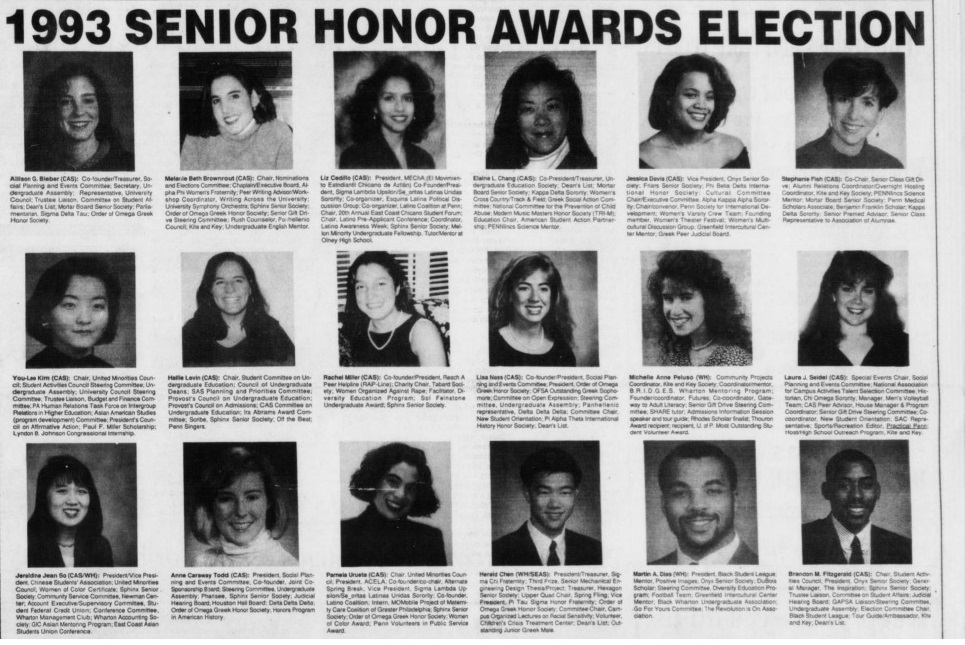 Penn Class of 1993 Senior Honor Award nominees published in The Daily Pennsylvanian for Ivy Day #93tothe25th University of Pennsyvlania