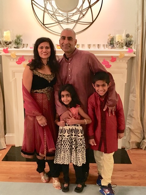 Minal Damani Kundra, W’93, and Monish Kundra, W’95, ENG ’95 with their children