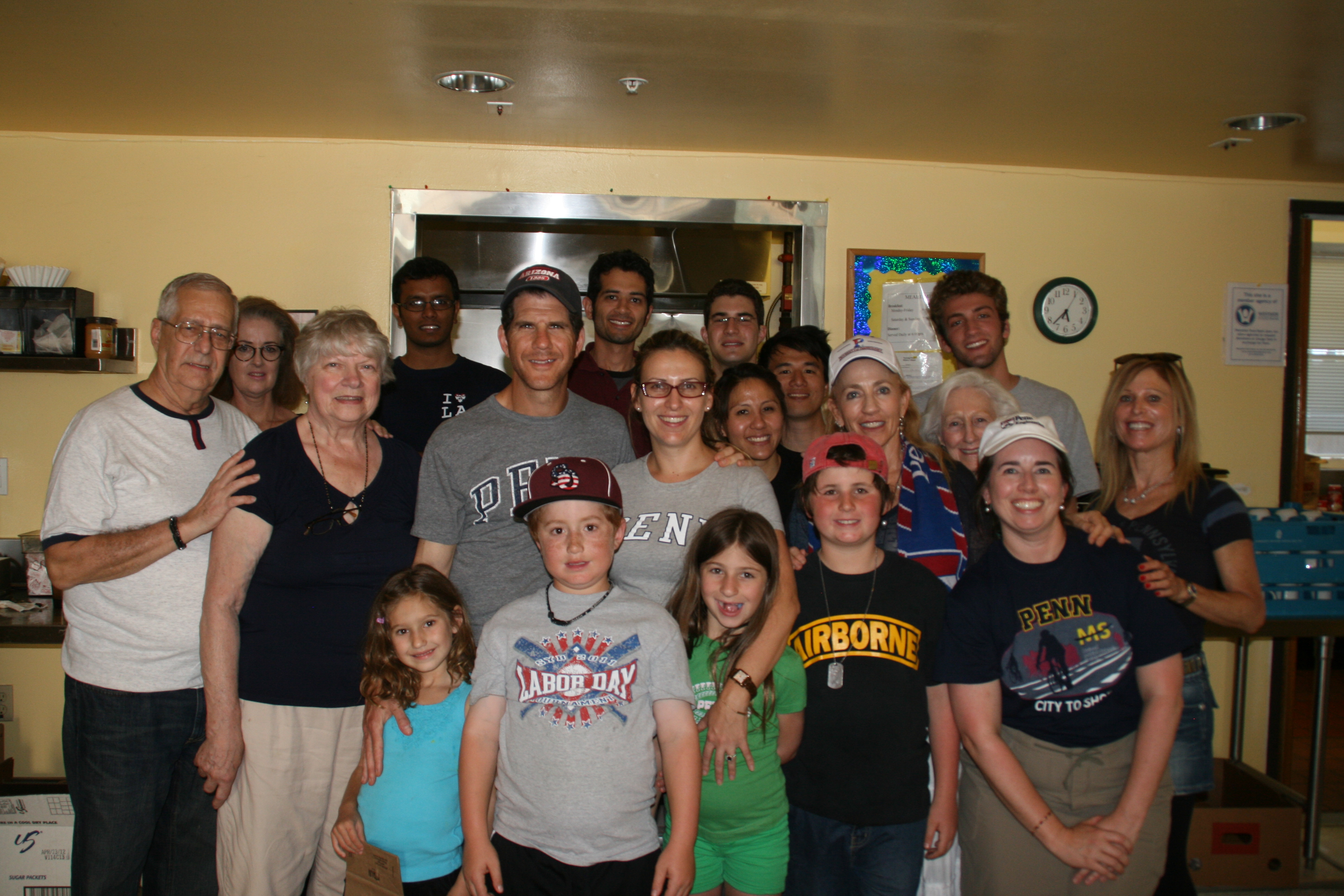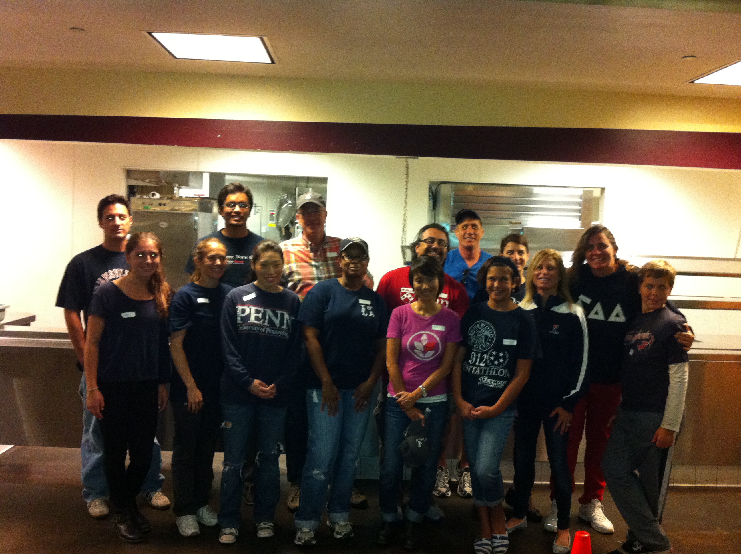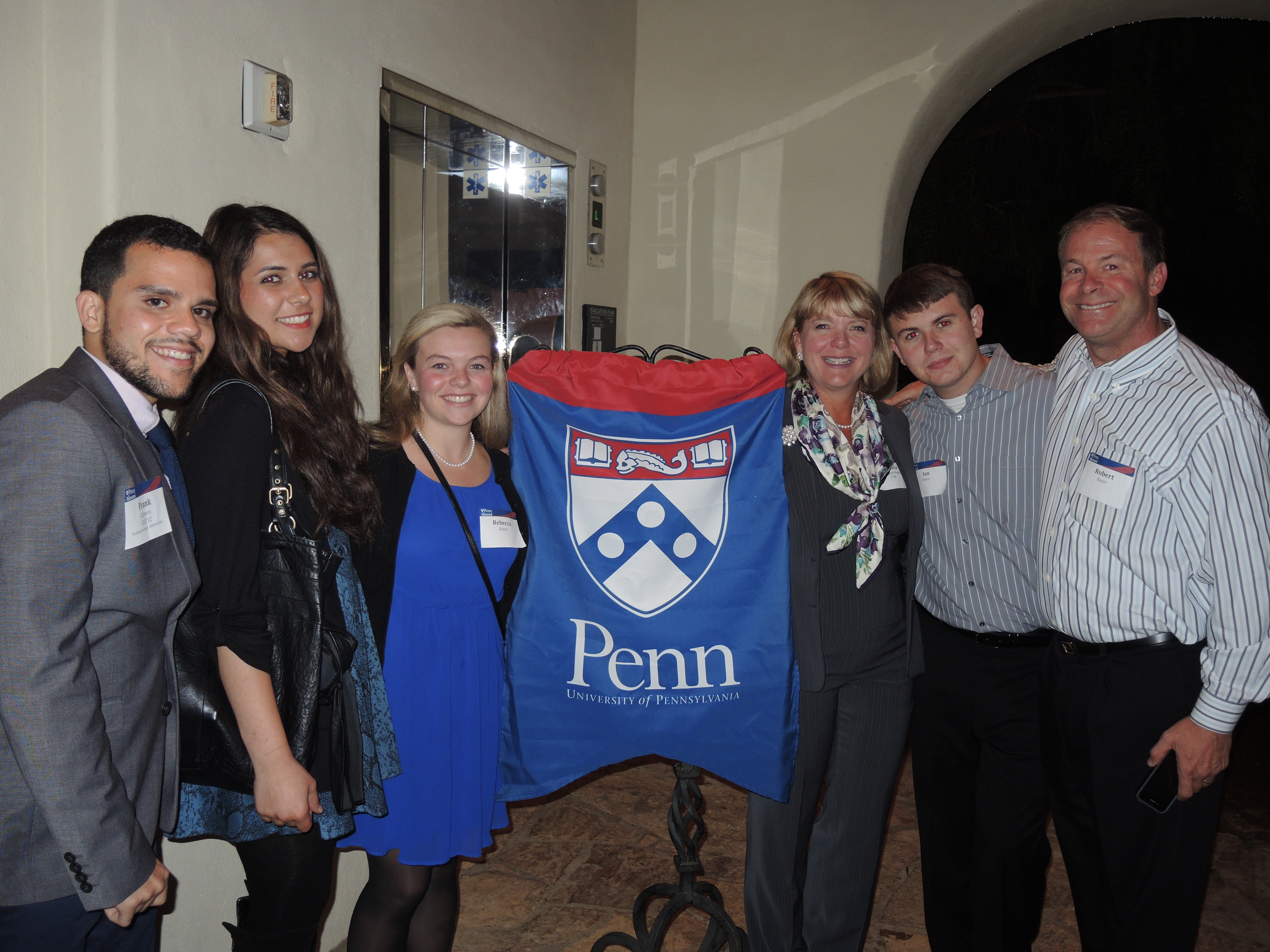 Look for friends, smiling faces and/or small Penn flag.